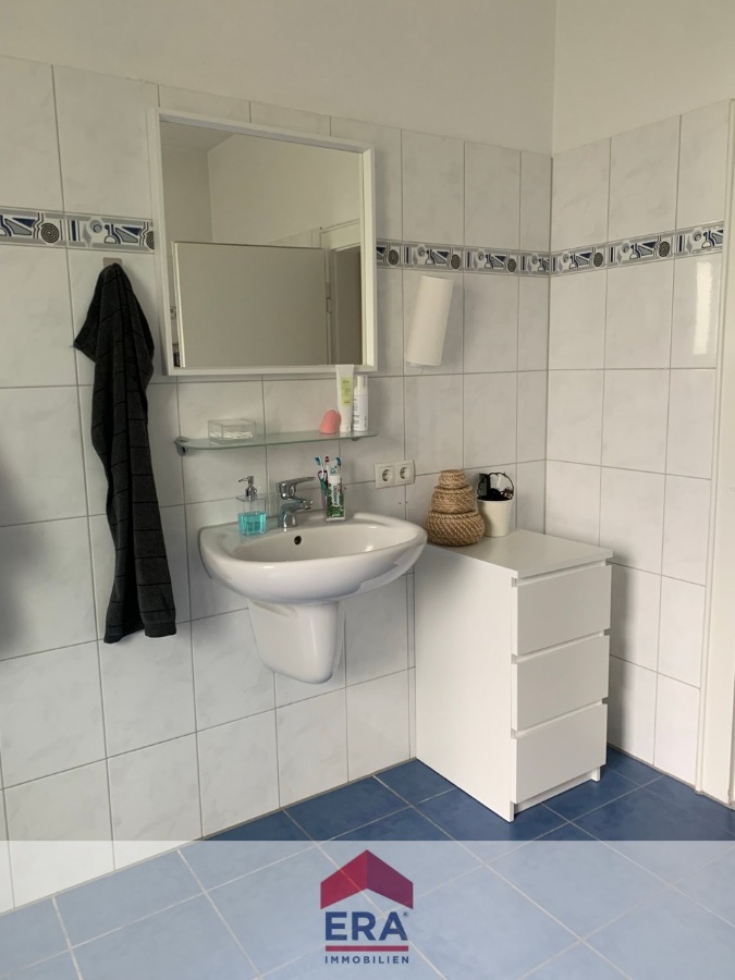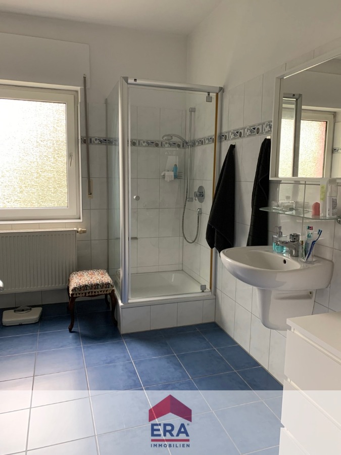 Das Tageslichtbad ist sowohl mit einer Badewanne als auch mit einer Dusche ausgestattet.